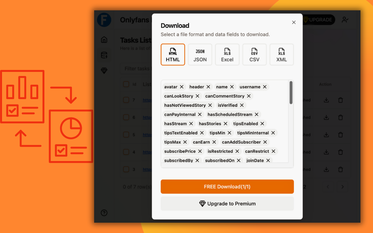 Effortlessly export onlyfans profile information from the user home page to a Excel/CSV/JSON/HTML/XML file with just one click.